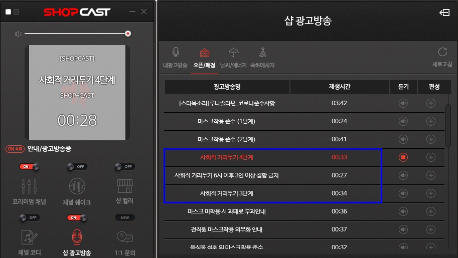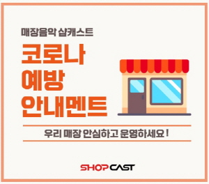 최근 수도권지역 코로나바이러스 확산으로 인하여 매장 운영조차 두려워지는 요즘 확실한 예방을 위해 샵캐스트가 준비하였습니다. 새롭게 추가된 샵캐스트 '코로나 예방 안내멘트' 로 우리매장 철저하게 대비하여, 걱정 내려놓으세요!...